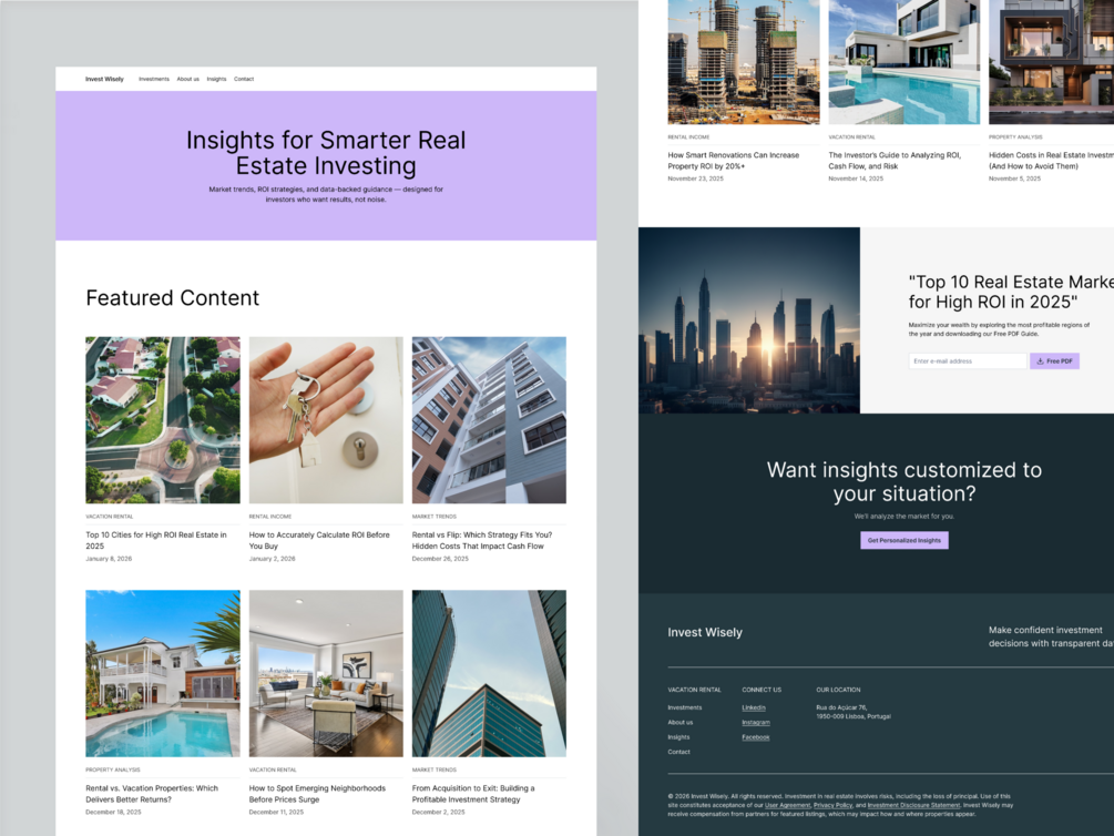 - Lead Generation Engine: Integrated professional forms for personalized investment outlooks and PDF guide downloads.