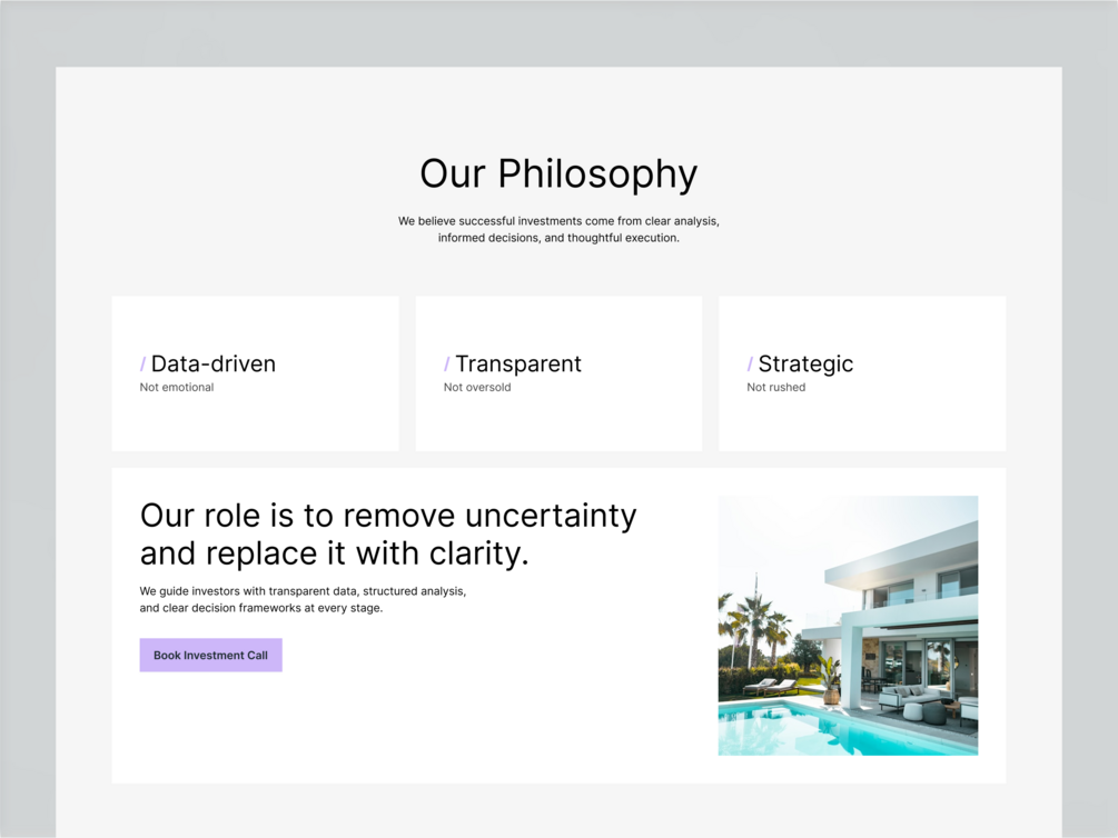 - Interactive Case Study Section: A unique "Before & After" renovation showcase designed to prove real-world results and rental income growth.